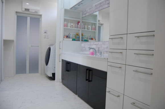 茨城県常陸太田市に機能的なモダン住宅が完成しました。白と紺色を基調とした爽やかな色合いの外観で、全てが大きく余裕たっぷりの間取りが特徴です。